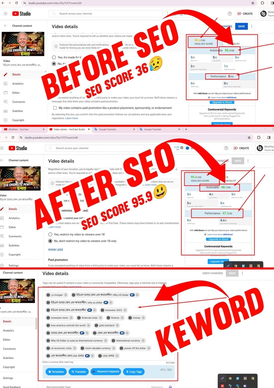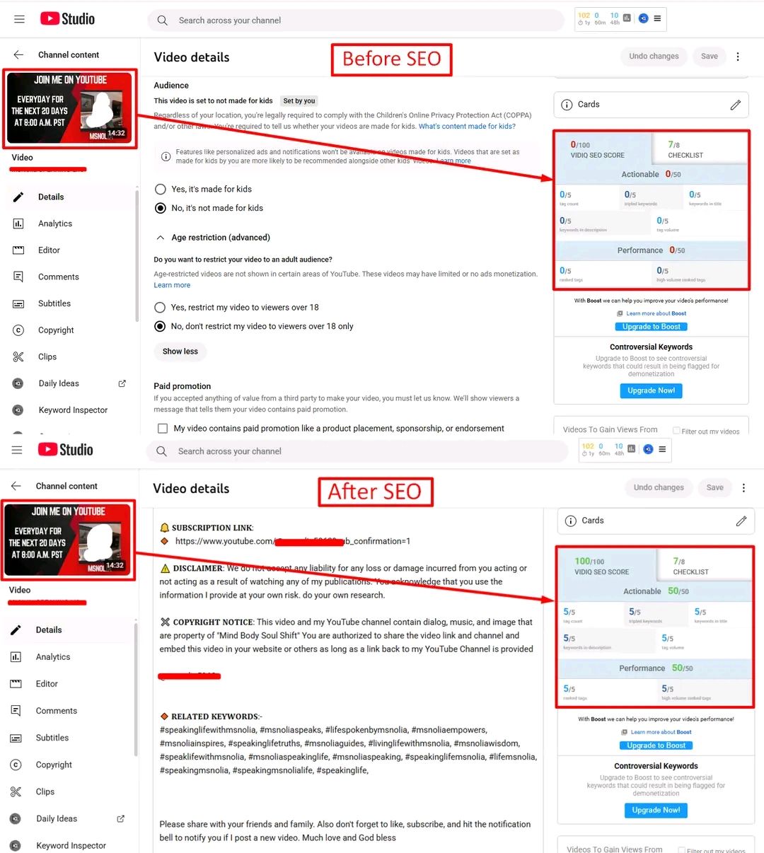 Optimize titles, descriptions, tags, and thumbnails.